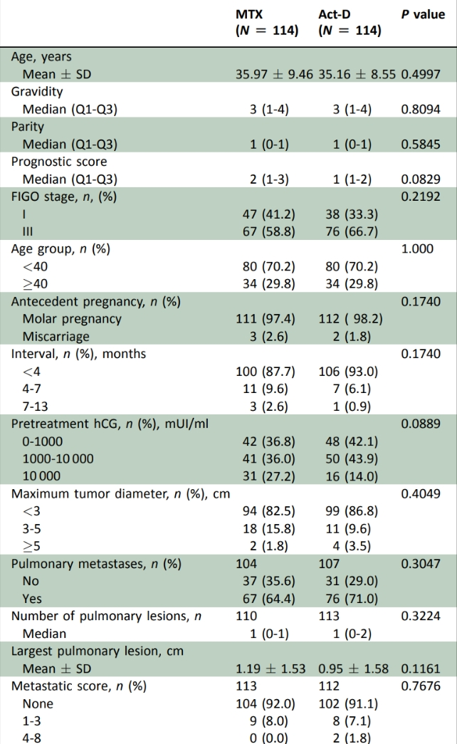 Ann Oncol丨向阳教授团队证实双周单剂量放线菌素D或多日甲氨蝶呤治疗低危滋养细胞瘤的疗效及安全性
