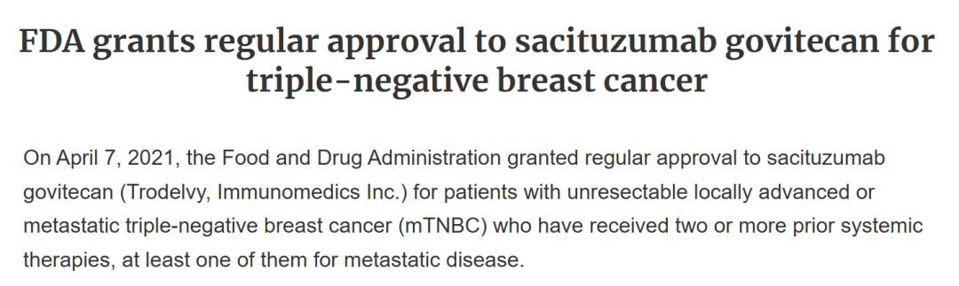 FDA加速批准SG三线及以上治疗TNBC
