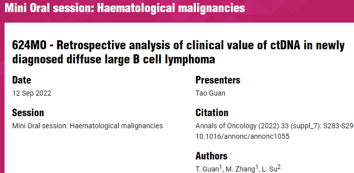 2022 ESMO丨苏丽萍教授:循环肿瘤DNA(ctDNA)可作为淋巴瘤诊断及治疗指导的重要手段, 应用前景巨大