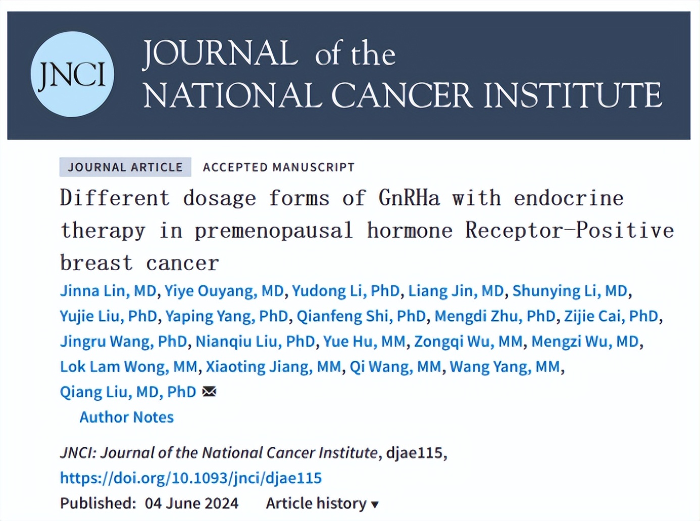 中山大学孙逸仙纪念医院刘强教授团队在JNCI杂志上报道不同剂型GnRHa联合内分泌治疗乳腺癌的有效性与安全性